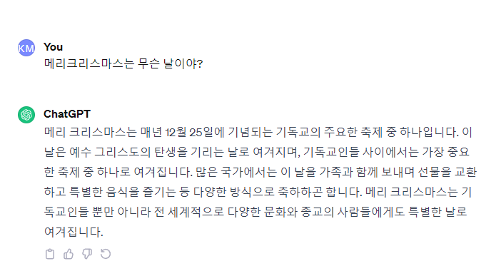 ChatGPT의 경우는 질문에 대한 답변만 바로 답한다.