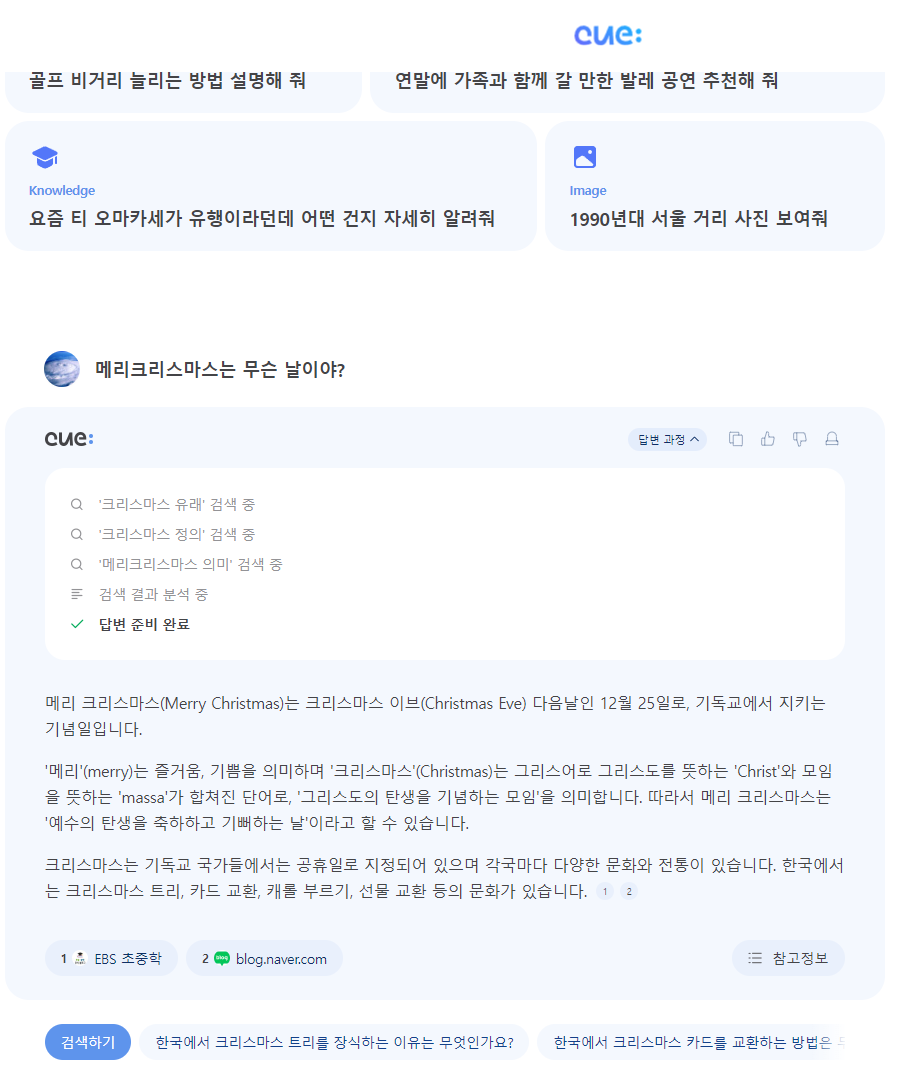 똑같은 질문을 ChatGPT와 Cue에게 해보았다.