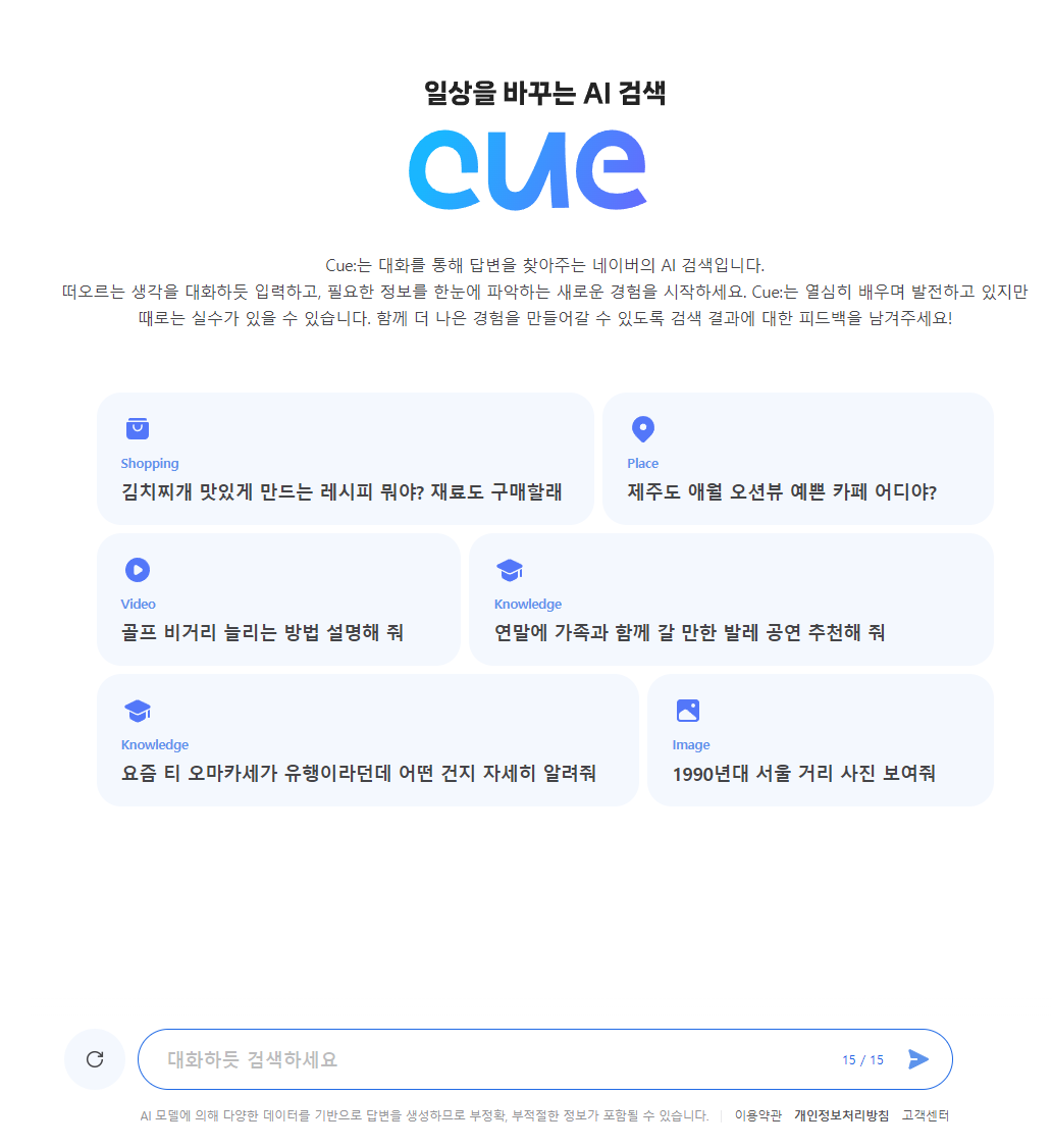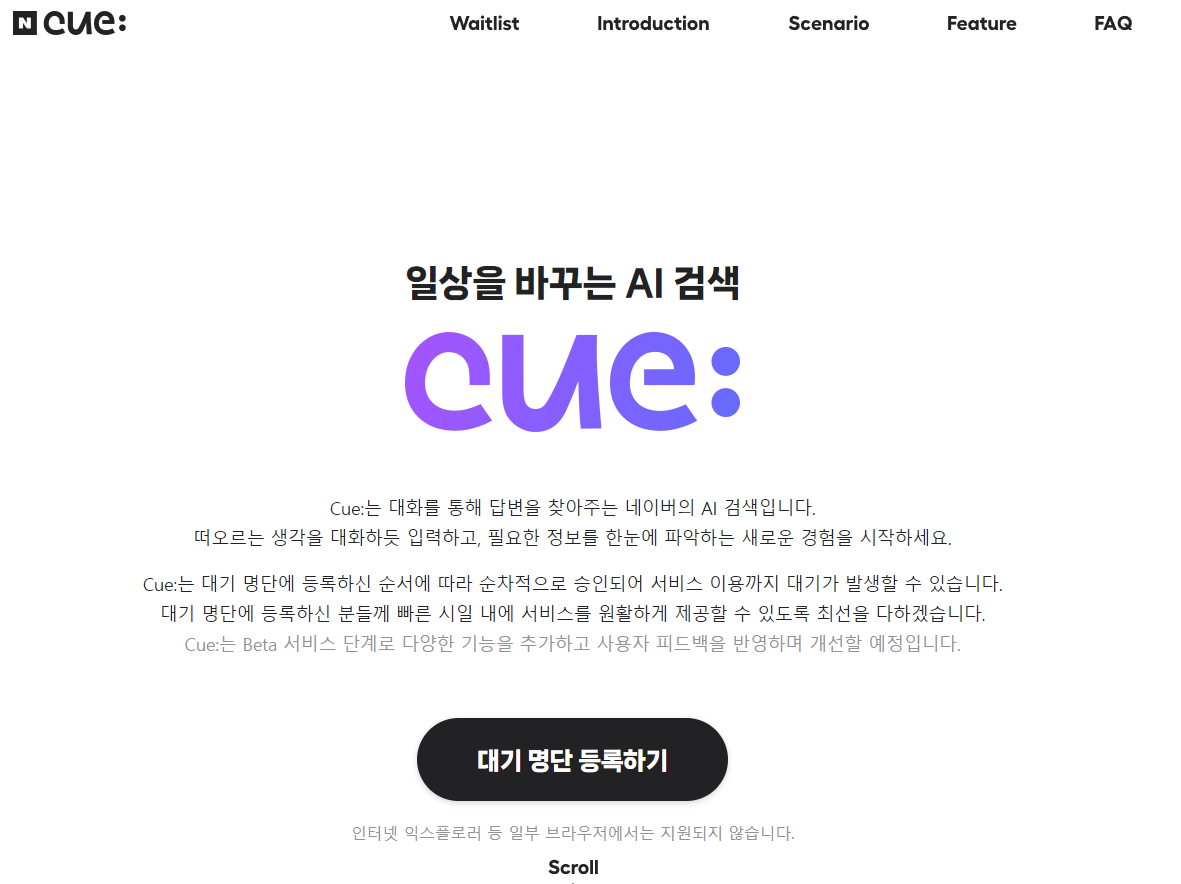 AI 열풍이 불고 있는 가운데 우리나라 토종 기업인 네이버에서 Cue: 라는 따끈한 AI 서비스를 내와서 한번 베타 서비스 신청을 해봤다.