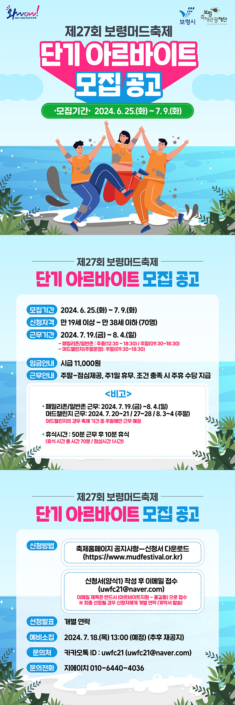 단기 아르바이트 모집 공고 제27회 보령머드축제