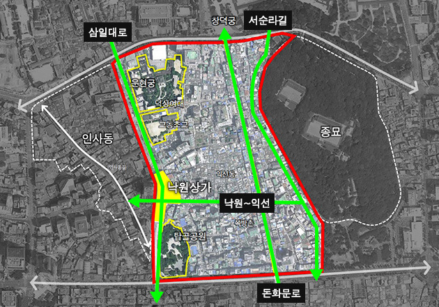 종묘 서쪽 돌담장을 따라 이어지며, 오래된 한옥과 카페, 공방 등이 있어 종로의 과거와 현재를 느낄 수 있는 장소입니다.