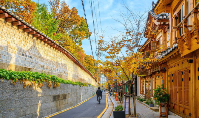 차량 통행을 최소화하고 안전한 보행로를 확보한 '차 없는 거리'로 지정되어 있어, 호젓한 가을 산책을 즐길 수 있습니다.