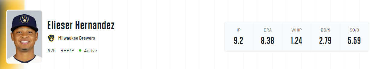 에르난데스는 1995년생으로 베넬수엘라 출신 우완투수다. 키 185㎝, 몸무게 97㎏의 체격 조건을 자랑한다. 에르난데스는 2018년 마이애미 말린스에 입단해 마이너리그 트리플A 통산 35경기에서 11승7패, 159⅔이닝, 평균자책점 2.87을 기록했다. 올 시즌에는 메이저리그 9경기에서 1패, 15⅔이닝, 평균자책점 6.32를 기록했다.
