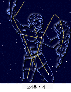 오리온(orion) 자리는 겨울철 가장 대표적인 별자리로 밝은 4개의 별과 가운데 3개의 별이 마치 장구모양을 하고 있다. 또한 가운데 3개의 별 바로 밑에 있는 M42 오리온 대성운은 가장 아름다운 성운중 하나로 그 안에서 새 별들이 만들어지고 있다고 한다.