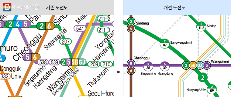 외국인을 고려한 표기 방식도 개선했다. 기존에 역번호만 표기되었던 노선도에서 역번호와 노선을 함께 표기하여 찾기 쉽도록 변경했다.