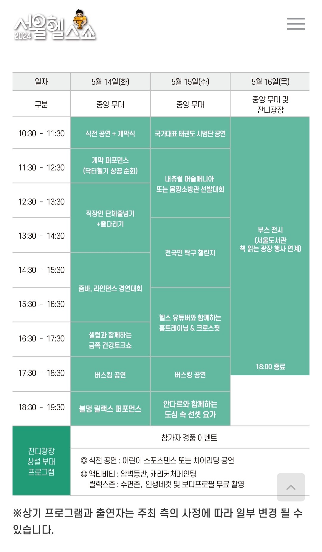 5월 14일부터 16일까지 서울광장에서 2024 서울헬스쇼 박람회가 열립니다