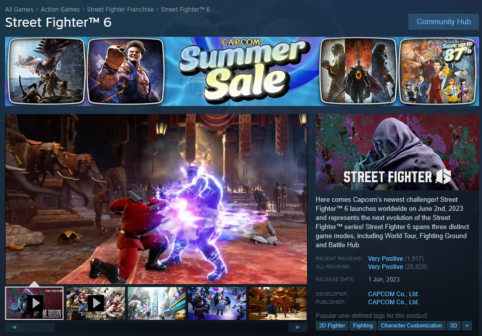 Street Fighter™ 6는 2023년 6월 2일에 전 세계에 출시되 Capcom의 독점 RE ENGINE으로 구동되는 Street Fighter 6 경험은 World Tour, Fighting Ground 및 Battle Hub를 특징으로 하는 세 가지 독특한 게임 모드로 구성됩니다. 18명의 다양한 파이터가 Ryu, Chun-Li, Luke, Jamie, Kimberly 등과 같은 전설적인 마스터와 새로운 팬이 좋아하는 캐릭터로 플레이 가능합니다. 각 캐릭터는 눈길을 끄는 새로운 리디자인과 신나는 시네마틱 스페셜을 선보입니다.